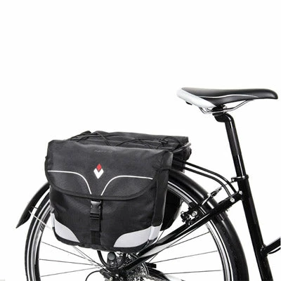 Cette sacoche offre une belle contenance de 2 x 7 litres pour une dimension de L 35 cm x l 0 cm x h 28 cm. Elle s’installe sur le porte-bagages arrière par un système de sangles et de boucles. Grâce à son revêtement déperlant, cette sacoche est étanche pour garder ses affaires à l’abri de l’humidité.
